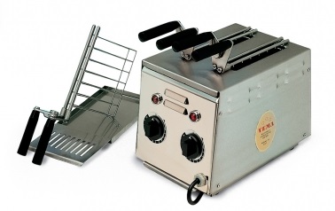 200х310х290 мм; 1,1кВт; 230В; 4 нагревательных элемента. Тостер из нержавеющей стали с 2 вертикальными независимыми нагревательными отделениями и 2 зажимами для быстрого поджаривания хлеба, бутербродов или лепешек типа “piadina”. Продукты помещаются в зажимы, а затем в вертикальные нагревательные отделения, и через несколько минут вы получите прекрасно поджаренные тосты. Эти аппараты выполнены полностью из нержавеющей стали для обеспечения лучшей гигиеничности.